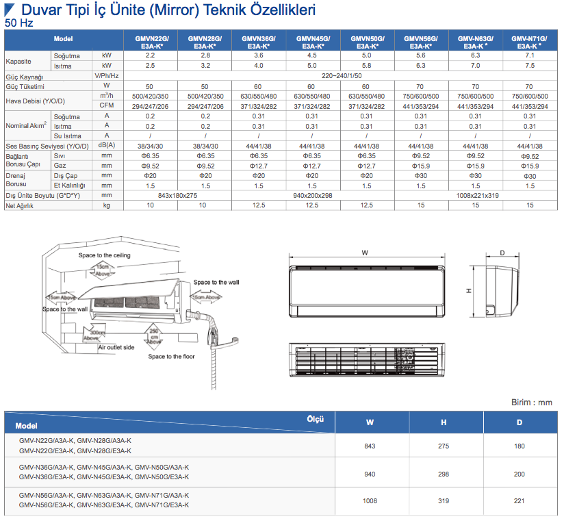 Gree Duvar Tipi İç Üniteler