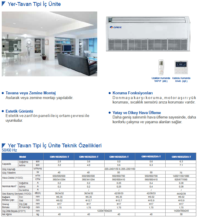 Gree klima yer tavan tipi modelleri, özellikleri ve fiyatları için iletişime geçiniz. En avantajlı gree klima fiyatları için hemen arayın.